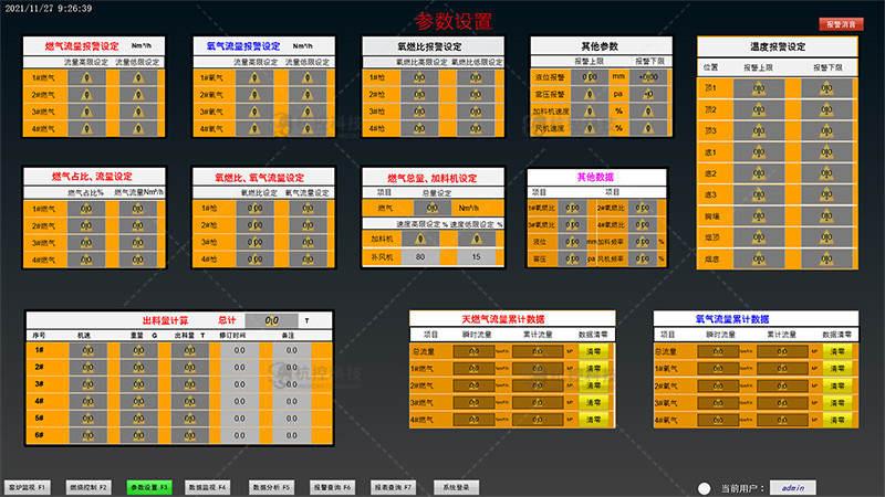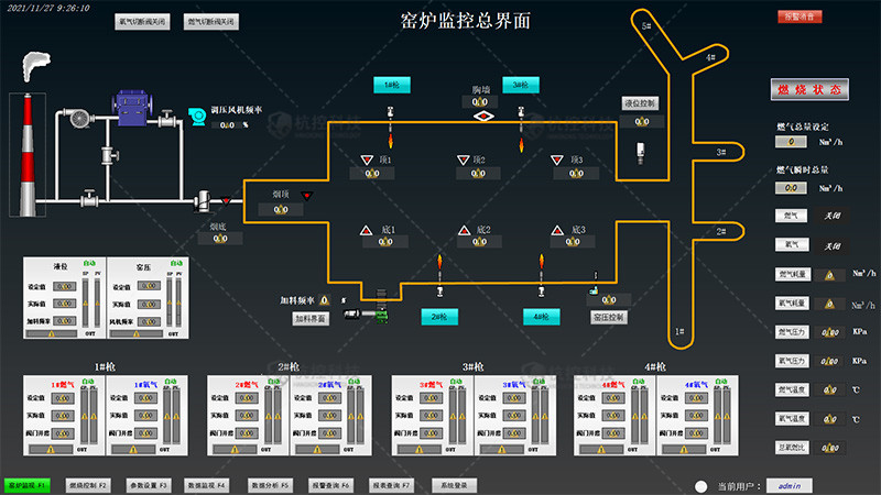 全氧窯爐作為工業燃燒主要的熱工設備,是一個多變量、多回路、高階、時變的非線性系統,許多參數之間相互關聯、相互耦合。從投料到原料在窯爐內熔化、澄清、均化和冷卻,經過一系列的物理、化學反應,形成均勻、無氣泡、符合成型溫度要求的熔融玻璃液。這是一個復雜的工藝過程。整個過程要求玻璃液的溫度、液位必須滿足工藝要求,以保證產品質量。